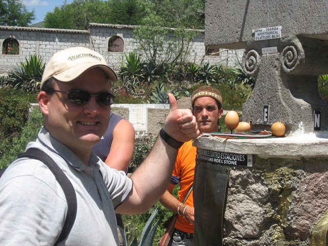 2008-04-23 Peru-Ecuador 2898They have a number of different sun dials which show you how the sun spends half of the year in the northern sky and the other half in the southern sky. No trip to the equator would be complete without trying to balance an egg on the head of a nail. Which I have to admit was pretty easy.