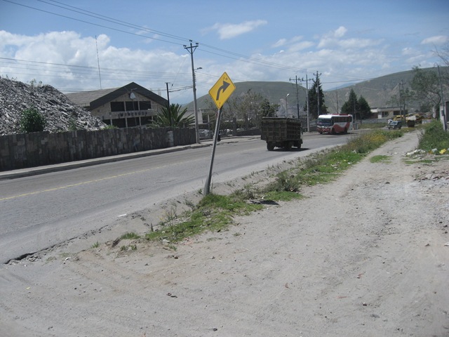 2008-04-23 Peru-Ecuador 2911 One thing was bothering me at both of these sites. My Magellan Explorist 600 GPS wasn’t reading all zeros for Latitude. So I started walking north, through the Intiñan Solar Museum  grounds, out through the parking lot, and finally out on to a busy road. And wouldn’t you know it, right on the far white line the counter hit Equatorzero. So dodging big trunks and heavy traffic, I got my picture to prove that I had been  to the Equator! 2008-04-23 Peru-Ecuador 2917